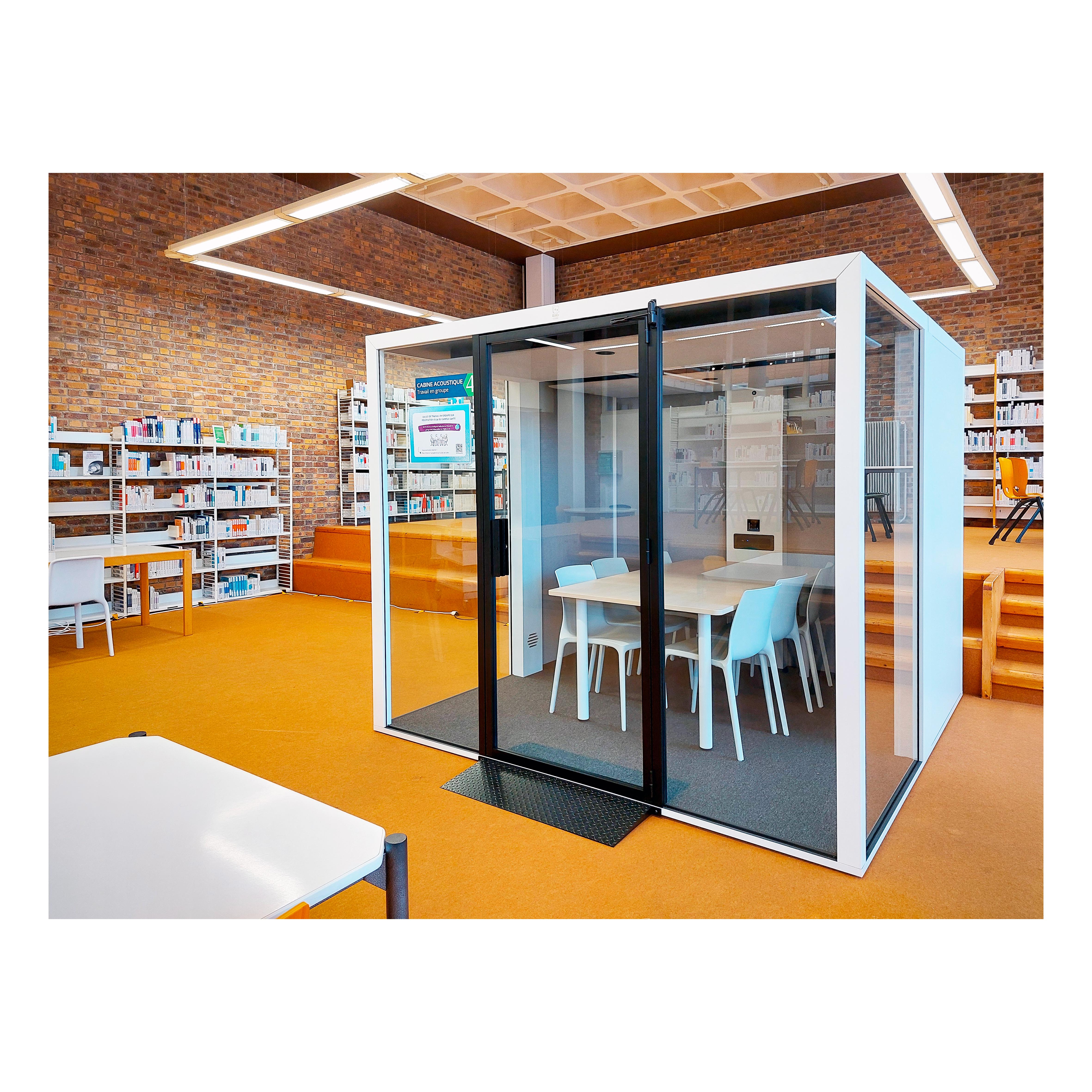 Depuis la mi-septembre, des cabines acoustiques ont fait leur apparition à la Bu Campus Santé, elles sont disponibles à la réservation sur l'application Affluences et s'utilisent comme des salles de travail en groupe.