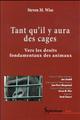 La 4e de couverture indique : "Tant qu'il y aura des cages est la traduction de Rattling the Cage (2000), contribution majeure au droit animalier. L'auteur, qui enseigne notamment à la Vermont Law School, est connu pour plaider comme avocat devant la Cour suprême des États-Unis en faveur des droits fondamentaux des grands singes.