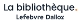 Détail document Partager Trouver le document dans d'autre ressources ???scheda.servizi.button??? Dalloz Bibliothèque (Bibliothèque Lefebvre-Dalloz) Base de données Accès à la ressource Ecrire une critique et la partager avec les autres lecteurs. Résumé Cette plateforme de lecture en ligne propose la version feuilletable des codes et des ouvrages des collections Dalloz, ainsi que certains incontournables Delmas et Sirey.3 accès simultanés autorisés Localisation Description Liens BUPEL@Bibliothèque en ligne Bibliothèque Bibliothèque en ligne Bibliothèque en ligne Plan Bibliothèque En ligne Cote Base de données En ligne étagère virtuelle https://www.bu.u-picardie.fr/opac/resource/BUP00774687